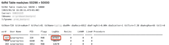 tblTurn - so may reads occur that the entire table (in the top box)could be read this many times per second. We can investigate the Table Name or the "usr#"s listed: