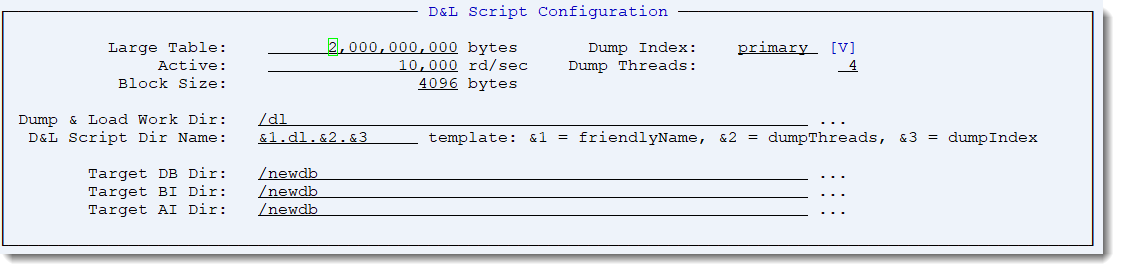 | Dump & Load Work Dir | Scripts are configured with this directory holding the newly created dump and load scripts |