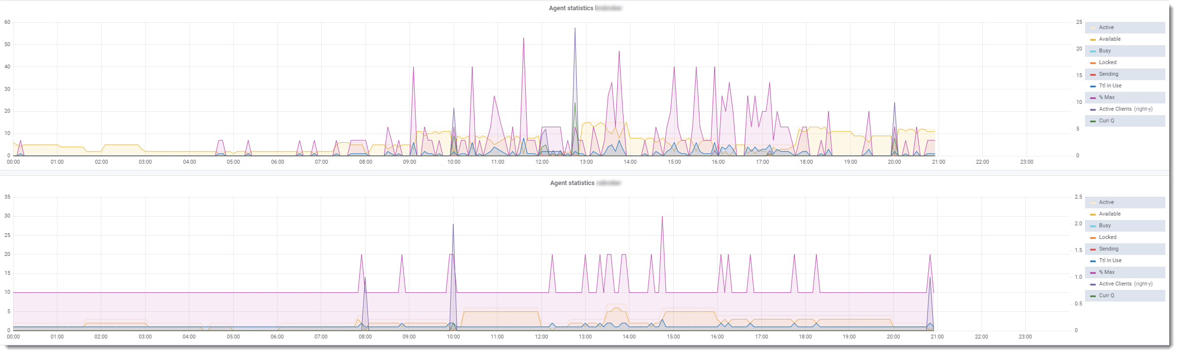 | Curr Q | Number of requests to the broker not yet assigned to an agent |