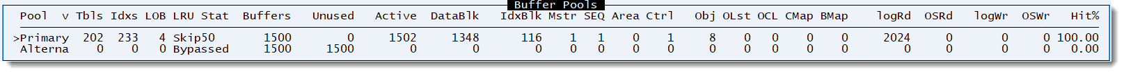 IdxBlk N/A Only available in late 11.x versions. Number of index blocks in the buffer pool