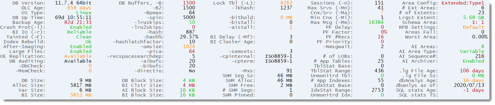 | Crash Prot (-i) | dbIntegrity | Status of crash protection. (-i) startup parameter |