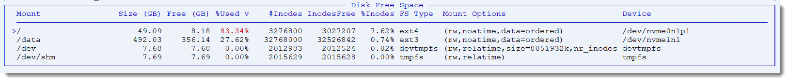 | %Inodes | inPctUsed | Number of Inodes in use as a percentage of the total number of Inodes |