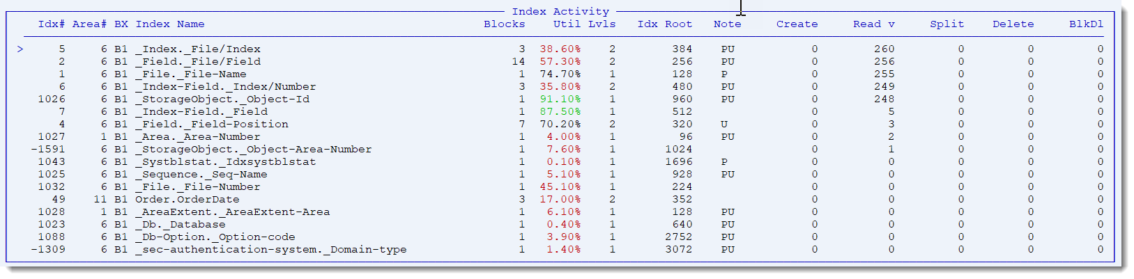 | Idx# | idxNum | Unique index reference from Progress schema table _index |