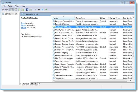 12. From the Windows Services screen, verify that the "ProTop3 DB Monitor" Service has been installed and started. If it is stopped or paused, restart it.