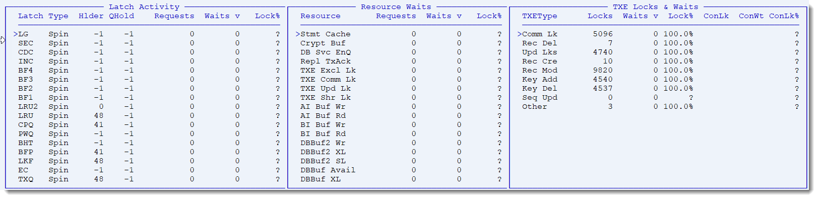 | Waits | latchLkPct | Number of times the process fails to get a latch because of excess spin |