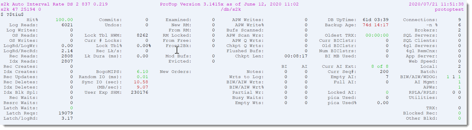 "Automatic" sets sampling interval per interval rate. Used in conjunction with the option to look at the default option interval rate of change as opposed to the cumulative change (since ProTop started) or the raw numbers (since the database server started)
