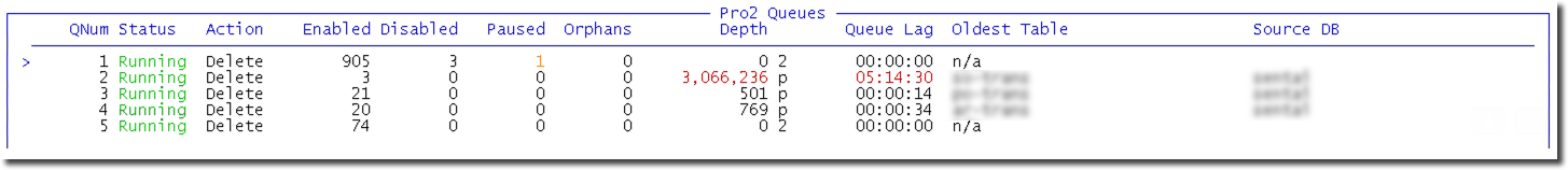 Displays Pro2 Replication Queue Activity. For more background see Pro2 Monitoring.