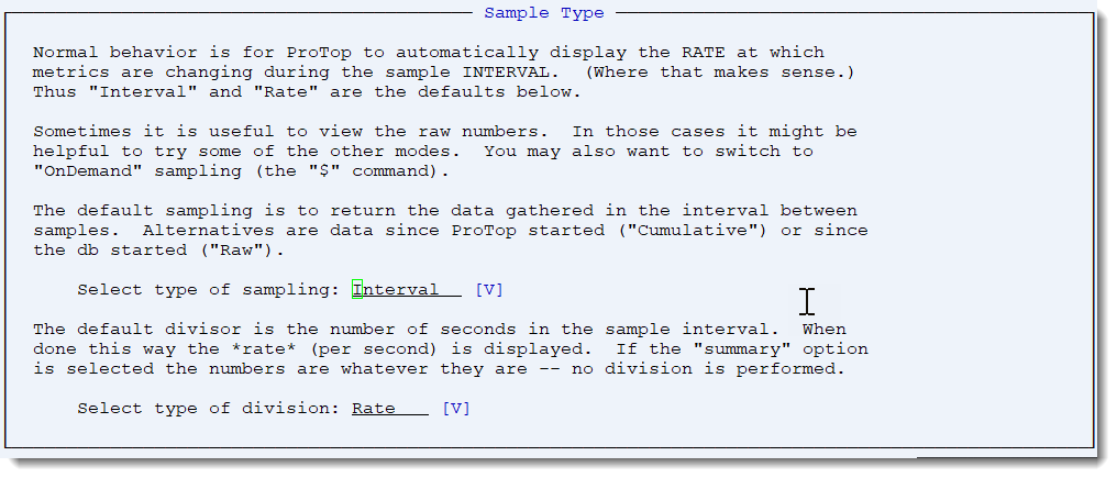 By default, most displayed values are calculated over the previous interval and are converted to rates, for example reads per second or writes per second in the past 10 seconds.