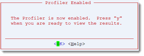 Selecting <OK> from the "Profiler Enabled" window returns you to the Dashboard screen.