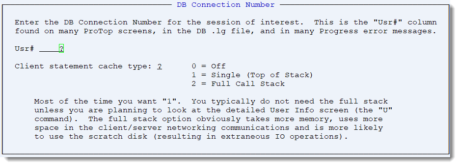 In order to zoom in on one particular user in ProTop RT, use this screen to specify the user number or set Process ID if you know the PID, then switch to the User Information View.