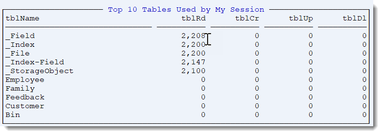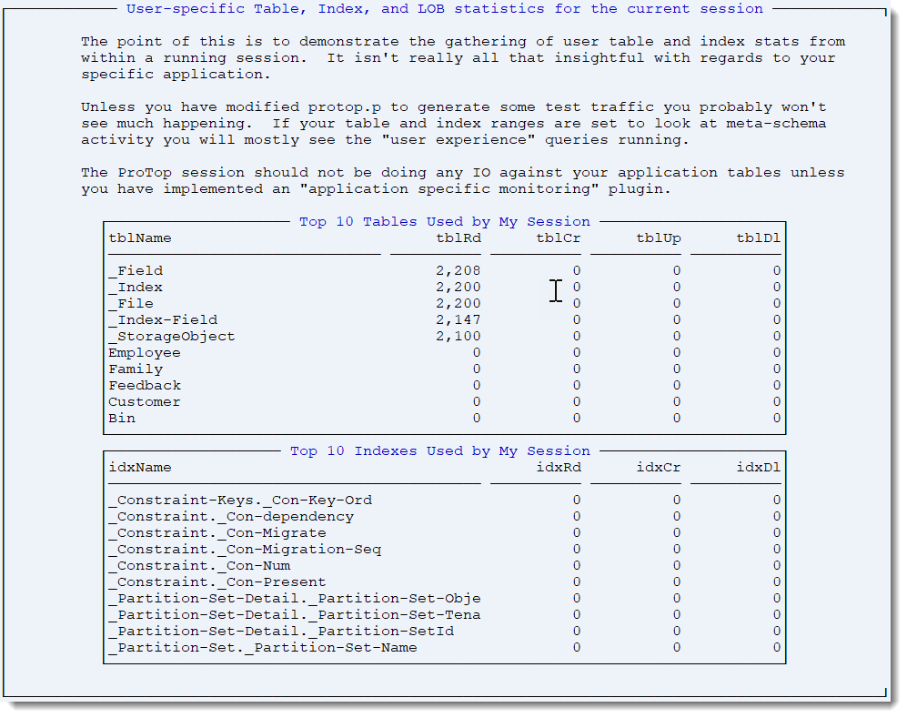 This screen is meant to provide an example of how to use session user statistics. No useful data related to the attached database is generated.