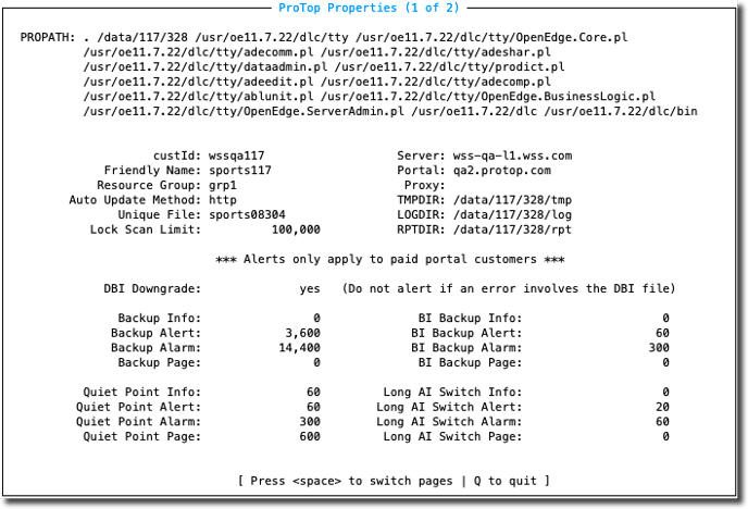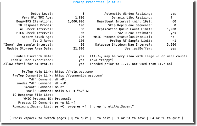 Show ProTop Properties (&) - Screen 1 of 2 (view only)
